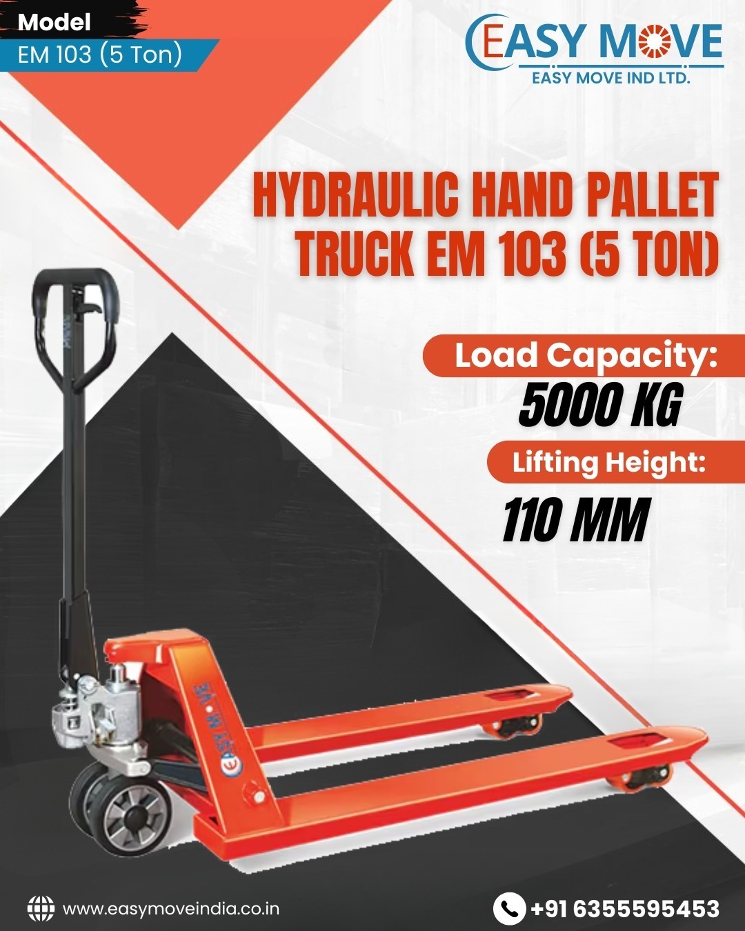 #EM103HandPalletTruck #HandPalletTruckManufacturerIndia #HeavyDutyPalletTruck #WarehouseEquipmentIndia #IndustrialMaterialHandling #BestPalletTruckSupplierIndia #EM103PalletTruck
