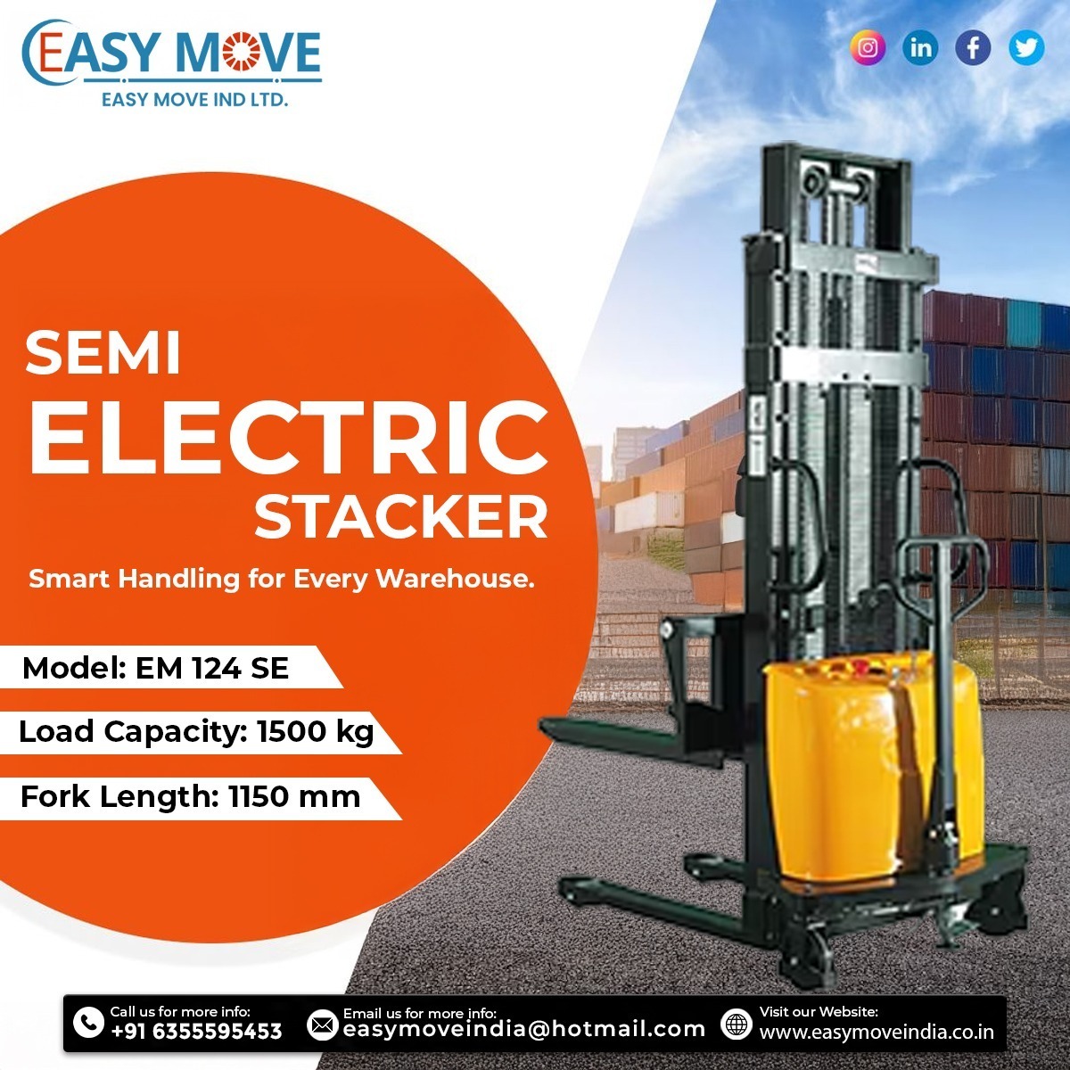 Easy Move, based in Ahmedabad, Gujarat, is a leading Semi-Electric Stacker Manufacturer in India, offering advanced and reliable material handling solutions for warehouses, factories, and logistics operations. Our EM 124 SE Semi-Electric Stacker is designed to boost productivity, ensure safety, and streamline lifting tasks with minimal manual effort.