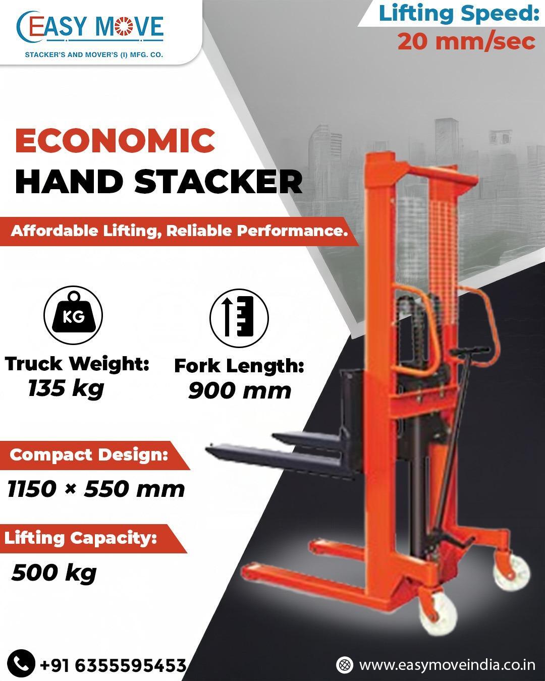 The Economic Hand Stacker from Stackers And Movers India Mfg. Co. is a trusted choice for businesses seeking cost-effective, durable, and low-maintenance lifting equipment. With reliable performance and easy maneuverability, the Economic Hand Stacker is a must-have for safe and productive operations.